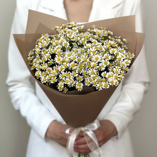Минималистичный и трогательный букет из 9 ромашек. Нежные полевые цветы как символ наивности, чистоты и искренности. Станет оригинальным дополнением к любому подарку. На сайте также можно приобрести воздушные шары, открытки и другие товары. С их помощью можно сделать подарок более полным и неповторимым. Мы гарантируем своим покупателям свежесть букетов. В противном случае обязуемся заменить композицию на новую. Цветы вы можете заказать на сайте и указать конкретное время доставки.